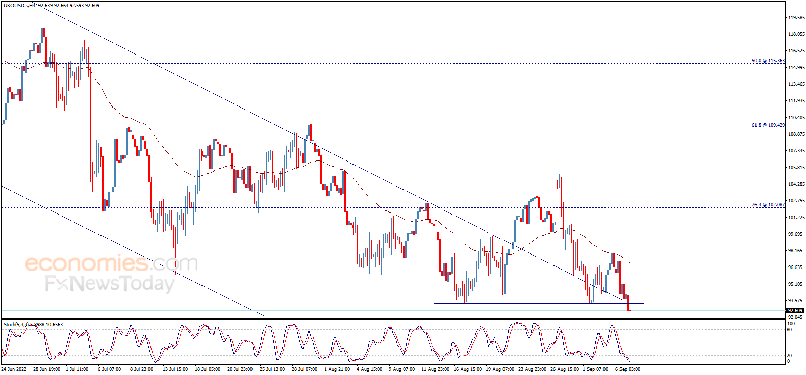 Brent oil price declined strongly yesterday after confirming breaking 96.10 level, to achieve our negative targets and surpass 93.25 to open the way to suffer more losses on the intraday and short term basis, and we expect to head towards 90.00 areas in the upcoming sessions.